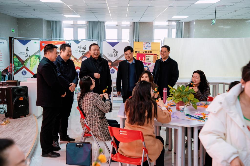 校党委委员副书记、院长安建平,副书记刘乃君,副校长胡森林、曹慧清,纪委书记贾昌麟莅临活动现场,祝所有女教职工节日快乐,并祝大家生活幸福、工作顺利,并与参加活动老师互动交流,对老师的作品给予了评价。