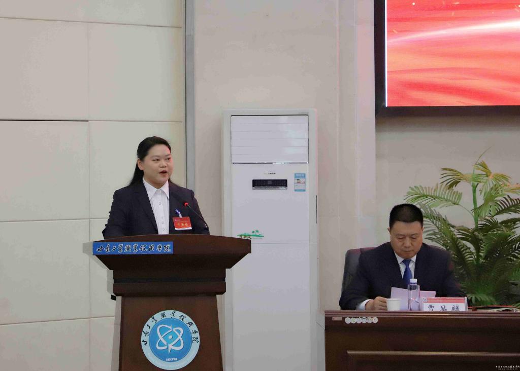 巩彩环在讲话中向学校妇女联合会的成立、第一次妇女代表大会的召开表示热烈祝贺,对学校在维护妇女权益、促进妇女全面发展、凝聚妇女力量服务建设等方面工作给予充分肯定,并就做好学校妇联工作提出三点殷切期望:一是坚持党的全面领导,确保妇联工作正确政治方向,切实把广大女教职工、女学生最紧密地团结在党的周围,坚定不移听党话、跟党走。二是围绕学院中心工作,引领广大女教职工勇担使命,关注女大学生和教职工所思所盼所需,当好她们的代言人、知心人、贴心人。三是发挥两个独特作用,着力推进家庭家教家风建设,团结带领广大女教职工、女学生自觉践行社会公德、职业道德、家庭美德、个人品德。同时希望学校妇联在学校党委的领导下,立足甘肃,发扬“四个一切”的核工业精神,继续为社会培养高素质技能人才,谱写出服务地方经济社会发展的光辉新篇章。
